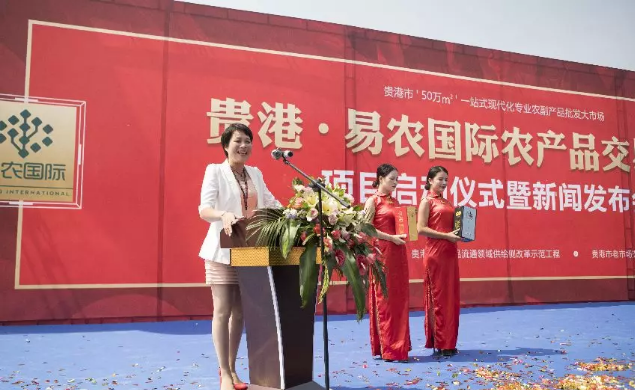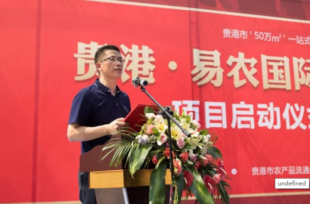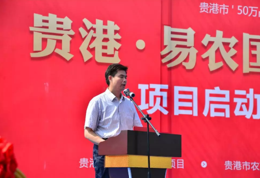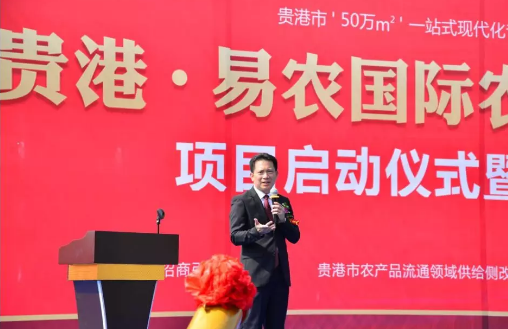 貴港好易農科技投資有限公司項目總經理鐘聲先生宣布易農國際農產品交易中心項目一期全面啟
