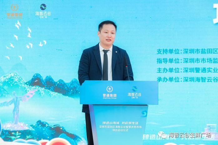 深圳警通實業集團有限公司董事長郭曉民在致辭中表示,海智云谷智慧農貿市場項目的啟動,將打造為鹽田區品質最健康、品類最齊全、性價比最高、市場規模最大、管理最智慧的農產品交易展示中心。以“智慧農貿技術、圳品標準”,通過引入主題餐飲+便民集市+樂活夜市,充分發揮緊鄰鹽田區主干道深鹽路的交通優勢,打造鹽田區最具活力的商業消費中心;通過“優質港口資源+新型商貿模式”助力鹽田區建設“全球海洋中心城市核心區”。同時也將為轄區居民提供高質量的產品和服務,讓逛農貿市場成為一種享受。同時還將提供更多的就業機會和創業平臺,實現“服務社區,方便鄰里。未來,集團將繼續履行社會責任,堅持“做政府所想,為市場所需”,充分發揮多元產業協同優勢,為鹽田的經濟社會發展貢獻力量。