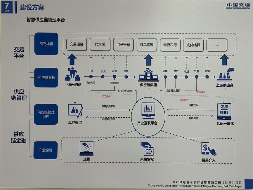 本項目區別于南京地區的眾彩市場和天環市場模式,中農儲農產品生態交易項目的經營重在打造“供應鏈體系”。農產品供應鏈體系是從農田到消費者手中,涉及到農產品計劃、種植、生產、采購、加工、運輸、銷售、結算等環節的一系列流程和活動。它包括了農產品的種植或養殖、采摘或收割、初加工、包裝、交易(分銷和零售)、運輸、倉儲、投資和結算等環節。中農儲農產品生態交易項目的目標是為實現農產品從生產者到消費者的高效、安全和可持續的流通提供供應鏈體系服務。