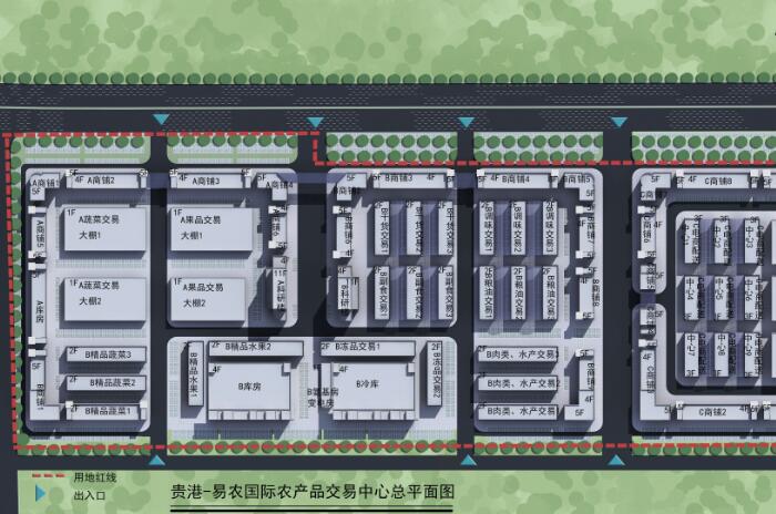 貴港易農國際農產品交易中心是貴港市2017年重點招商引資項目,省市區三級重點項目、自治區“十三五”重點民生工程項目。是貴港市“菜籃子、米袋子、果盤子、油罐子”工程,貴港市農產品、食品安全工程,貴港市農產品流通領域供給側改革示范工程。貴港市老市場提質升級承接的大平臺。